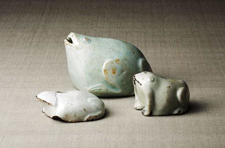 朝鮮朝時代の宗室出身の画家で、禽獣図を得意とした李巌筆の「架鷹図」(朝鮮朝時代16世紀)、牛の角を薄く削ってその裏面に顔料で文様を描き、これを器物に貼り付けて装飾した「華角鳥獣文箱」(同17世紀)をはじめ、白磁蛙型水滴(同19世紀)など約60点を展示する。