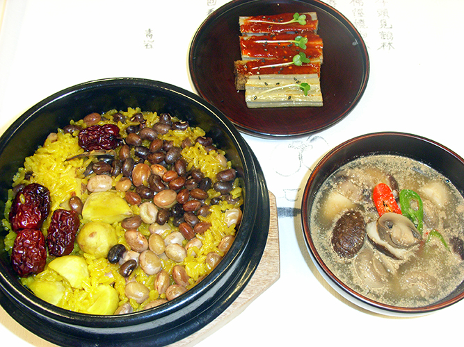 韓国精進料理の調味料は醤油、味噌、塩がメーン。醤油は手作りで10年以上熟成したものを使う。日本の納豆よりも匂いが強く、独特のクセのあるチョングッチャンも欠かせない食材だ。