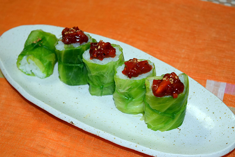 パプリカ味付けコチュジャンキャベツ包みごはん