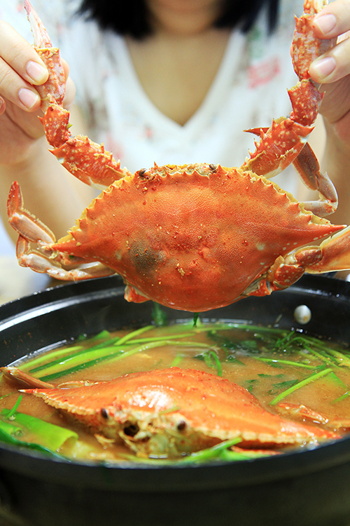 | 洪元港であがったワタリガニをいただく |