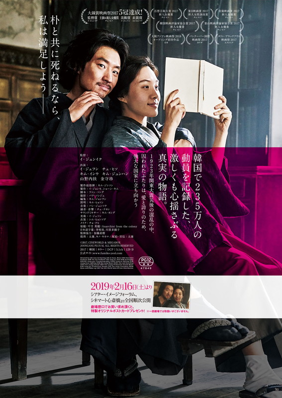関東大震災の混乱のさなか朝鮮人虐殺の歴史を隠蔽しようとした日本政府の圧力に屈服せず、最後まで「アナーキスト」としての信念を貫いた独立運動家、朴烈とその日本人妻金子文子の愛と葛藤を描いた映画「金子文子と朴烈」(李濬謚監督)が日本でも公開される。韓国では2017年、235万人を動員する大ヒットを記録した。