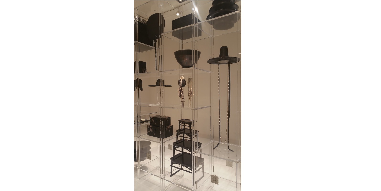 ギャラリーは壁と床を白と黒に色分けし、白のスペースには黒の作品、黒のスペースには白の作品が、朝鮮朝時代の民画である冊架図(書架を中心に文房具や骨董品などを描いた絵)を思わせるアクリルの展示台に置かれいる。展示台は、白銅に繊細な文様を施したアクリル製の平壌半閉櫃(ピョンヤン・パンダジ)を手がけたヤン・ヒョンスンさんが制作した。