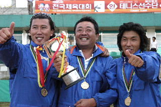 韓国国体2日目の9日、在日同胞はテニスで3個の金メダルを獲得した。この日、海外同胞の部・テニス男子シングルスで李興雨選手が、同ダブルスで李興雨、姜秉允組がそれぞれ優勝、総合でもあわせて3種目を総なめした。