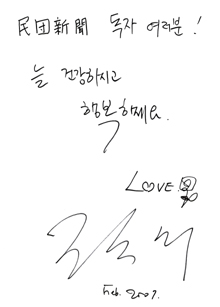[ 民団読者へのメッセージ、サイン ]