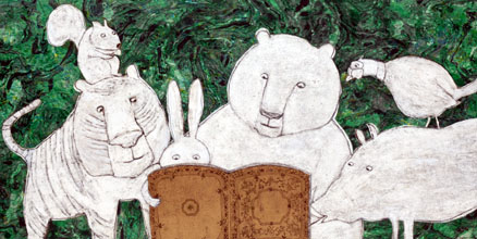 韓国からは佳作のキム・ジョギュンさんの「飛ぶ鳥たち」、オ・ジュンテクさんの「誰も開かなかった本」、奨励賞のユ・ジュンジェさんの「動物農場」の原画を紹介。チョン・ヨンミさん文・絵「チュウ太郎の青い国」(第9回佳作受賞)らの絵本を展示する。