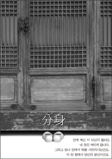 [ 部屋にいる方が誰なのかは分からないが、整然とそろえられたこの一足の清潔な姿が、私の襟を整えさせます。そしてこの方が外に立っている私に、それまで気づかなかったものを教えてくれたような気がします。この一足の履き物が、部屋の方の分身ですね。(訳) ]