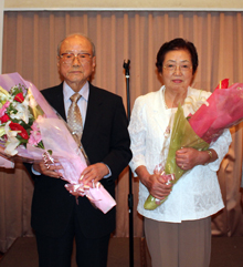 支部顧問を代表して金容海さん(民団大阪本部顧問を兼任)が、「在日同胞の人権伸張と次世代育成」の観点から、金顧問の功績を称えた。朴英哲顧問(民団大阪本部副団長を兼任)も、建青から民団大阪本部議長までの長き民団活動への貢献を強調した。金二泰顧問は、「90歳になって人と人との絆の大切さを実感し、民団という組織のよさを再認識しました」と御礼の言葉を述べた。