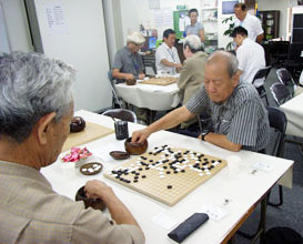 第1回の対局には民団東京本部からアマチュア5段の李昇虎生活部長をゲストに迎え、同胞と日本人の愛好家9人が楽しんだ。周永実さん(80、東京慶尚南道道民会副会長)は、「囲碁はゴルフと違ってお金がかからない。ぼけないためにも徹底的に勝負にこだわっていきたい」と意気込んでいた。