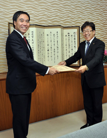 【長野】長野韓国青年商工会(蔣炳宙会長)が11月24日、県庁知事室に招かれ、阿部守一知事から感謝状を伝達された。「県の児童福祉事業に役立ててほしい」と、5年前から事業収益のなかから毎年、資金を捻出してコツコツと寄付金を贈ってきたことが認められた。