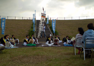 翌年には指導にあたる長廻政志さんを中心にチームを立ち上げ、公演を始めた。韓国・東海市からは著名なサムルノリグループ「ノリペオウルリム」を招き、ワークショップも開催している。