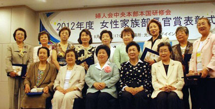 懇親会を前に、女性家族部長官から韓日女性交流や婦人会活動功労会員10人への表彰式がもたれた。金長官は「今回の麗水博をはじめ、母国の大イベントにいつも力を寄せて頂き感謝の気持ちでいっぱい」と述べた。