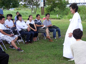 ここには虐殺現場となった旧四ツ木橋があった。70年代、小学校教員だった絹田幸恵さんが古老から聞き取り調査をした結果、「大勢の朝鮮人が殺害された」「兵隊も来て機関銃で撃った」ことが明らかになっている。犠牲者は少なくとも100人を超すという。近くで釣りをしていた親子連れは、「初めて聞いた。胸がつぶれる思いだ」とびっくりした表情だった。