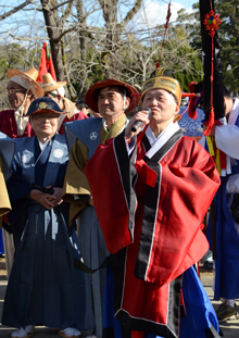 公園の中心に建つ家康の銅像前では一行を代表して正使に扮した金団長が、「家康公が願った朝鮮と日本の友好の精神を胸に刻み、これからも韓国と日本が末永く仲良くやっていけるよう努力します」と誓った。この後、多くの買い物客でにぎわう中心市街地の呉服通りを練り歩いた。