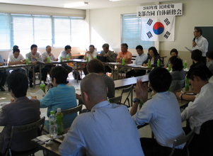 【愛知】民団愛知本部(鄭博団長)は7日から「支部合同自体研修会」をスタートさせた。第1回は本部から離れた東三河の豊橋に名南、一宮の両支部が合流した。さらに、民団本部、青年会愛知、三光株式会社の各役員も加わり、全体で41人となった。