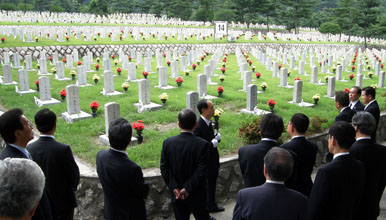 北韓の奇襲南侵によって勃発した6・25韓国戦争に参戦した在日青年・学徒志願兵642人のうち、戦死は135人。この勇士たちの遺骨が国軍墓地(現、国立ソウル顕忠院)に移葬されてから50周年の1日、当地で記念慰霊祭が営まれた。