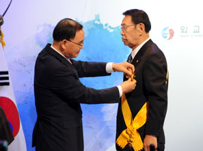 記念式では、在外同胞社会の権益伸長に寄与したとして政府の褒賞叙勲者名簿に上がった97人(団体含む)のうち10人に、鄭総理から直接勲章・褒賞が授与された。日本からは鄭進・民団中央本部常任顧問(前団長)に国民勲章最高級である無窮花章、高橋明・山形県日韓親善協会顧問に木蓮章が、それぞれが授与された。
