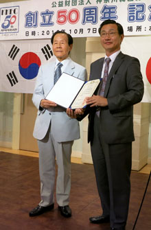 席上、外交部の李廷観在外同胞領事大使は、民族教育に尽くした同教育院の半世紀の功績を称え、朴槿恵大統領表彰を授与した。趙理事長は、韓国学校設立の草創期の願いが成就しなかったものの、地域における在日1世の民族教育にかけた思いと今日の多文化共生拠点へと成長してきた足跡を振り返りながら、「今後も韓日文化交流に尽くしたい」と決意を新たにした。