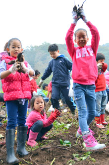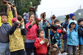 江戸川支部、オリニが芋掘りに大喜び