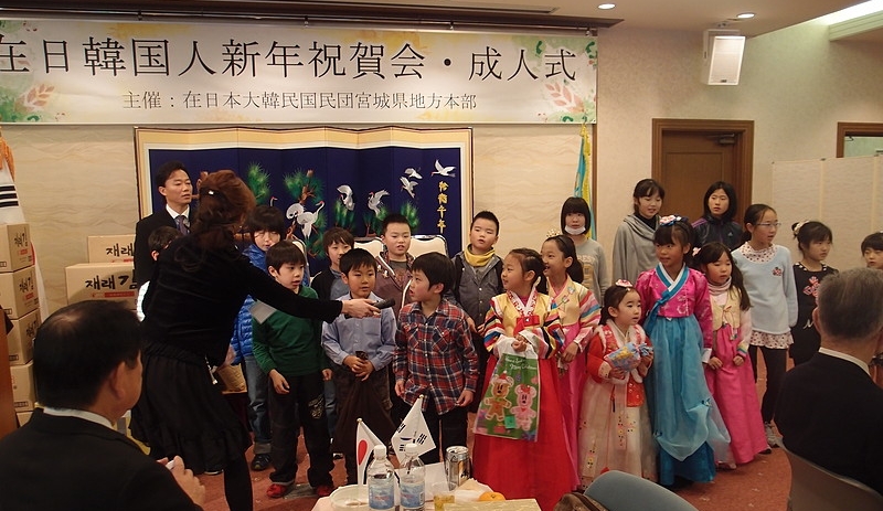 民団宮城(田炳樽団長)は11日、同韓国会館に210人を迎えて式典を開催した。田団長は「韓日関係は混沌としていても、総領事館との二輪駆動で韓日間の草の根交流を推進していく」と抱負を述べた。席上、韓商連の文晟二副会長から民団に見舞金、宮城韓商に寸志が伝達された。