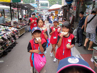 韓国の小学校体験入学ではチャンゴをはじめ国技のテコンドや民俗遊戯にも挑戦した
