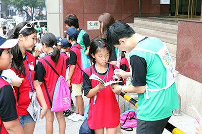 ソウル市内スタンプラリーのチェックポイントには新韓銀行の行員12人も応援にかけつけた