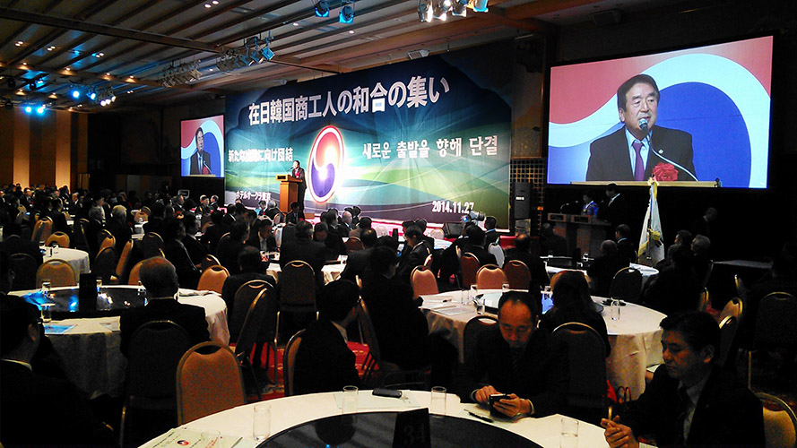 「在日韓国商工人の和合の集い」(同実行委員会大会長=洪采植・在日韓国商工会議所<韓商連>会長)が11月27日、東京都内のホテルで全国各地から450人が参加して開かれた。「新たな出発に向け団結」をうたったこの集いには、一般社団法人在日韓国商工会議所(以下、一社)からも12人が参加し朴忠弘会長が祝辞を述べた。柳興洙駐日大使は来賓祝辞で、集いが在日商工人の統合に向けた新たな出発点になることへの期待を表明した。