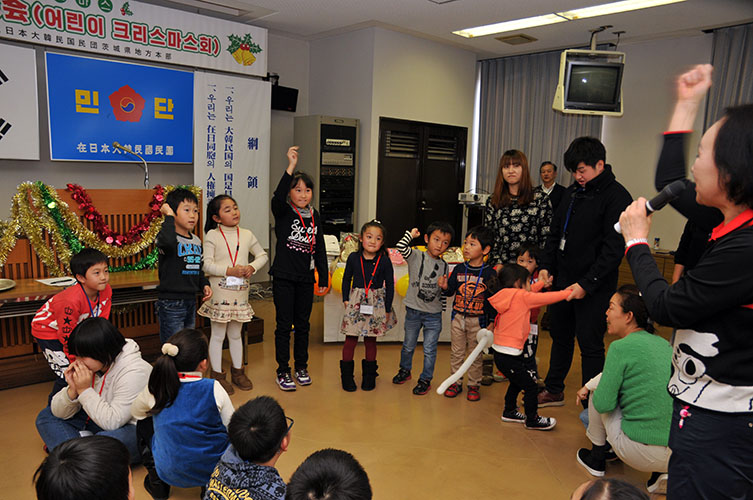 民団茨城本部(張仙鶴団長)のオリニクリスマス会にはオリニ26人が若い両親とともに参加。さらにオリニのハラボジ、ハルモニも加わり、3世代交流の場となった。参加者は家族単位で紹介され、張団長と一緒に記念写真に収まった。7日、茨城韓国会館で開催。婦人会(張光子会長)が準備した心づくしの料理を囲み、いす取りゲームやクイズに興じた。