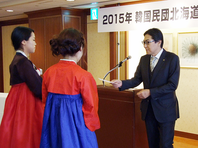民団北海道本部(任泰洙団長)は16日、札幌市内のホテルに新成人を招いた。参加の2人には民団から「クオカード」、婦人会とあすか信組札幌支店からは商品券がプレゼントされた。新成人は引き続き新年会にも出席し、関係者150人から祝福を受けた。
