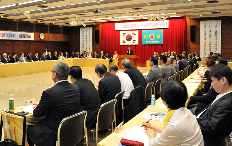 団務示達では「ヘイトスピーチ根絶に向けた9月地方議会集中活動(意見書採択陳情)の推進」「1000人規模の韓日国交正常化50周年交流訪韓団『日韓親善友好の集い』開催(10月21日)への積極参加」「2016年3月末からの第20代国会議員在外選挙への対応」などを確認した。