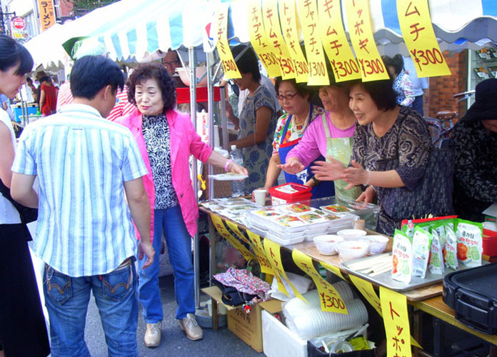 【西東京】飲食店を中心に200以上の店舗が軒を並べるJR立川駅南口すずらん通りとその周辺で23日、「秋の食楽祭」(立川南口フェステイバル実行委員会主催)が開かれ、民団西東京本部(全實団長)も出店した。
