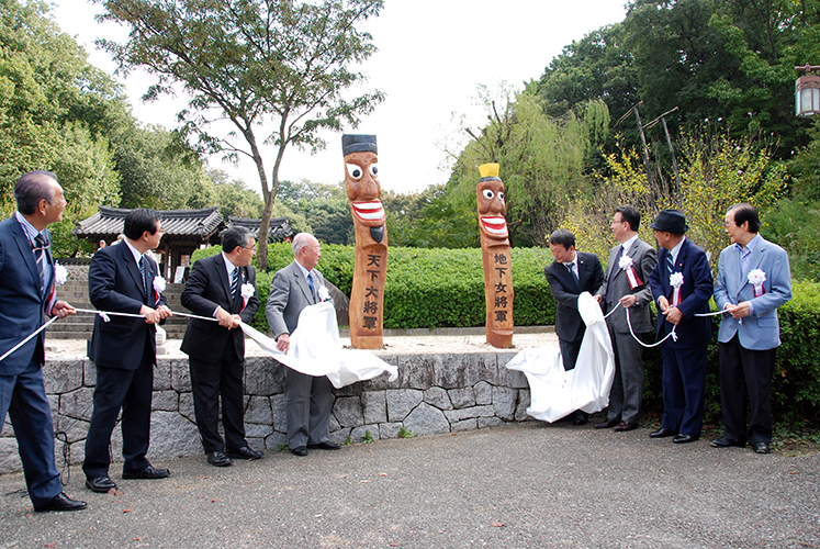 今年は京畿道と県が友好姉妹提携を結んで25周年。これを記念、同公園内のチャンスンを新しく建て直した。開会式で金団長は、「韓日の交流がよりいっそう進む場所になってほしい」と願いを語った。