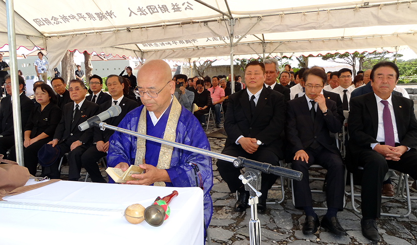 主催者を代表して民団沖縄本部の金仁洙団長が、「悲惨な戦争を繰り返さないためにも、この慰霊祭を続けることは意義深い」と述べ、韓日間の安定した関係を祈った。