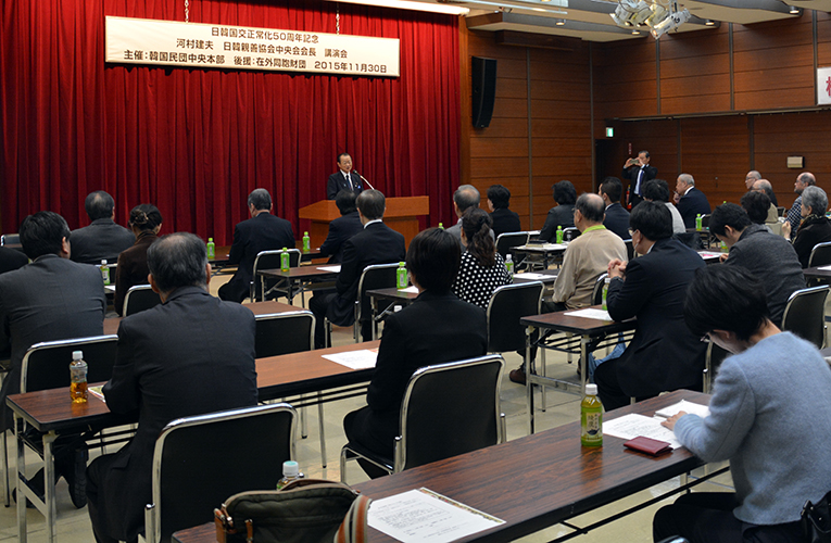 衆議院議員で日韓親善協会中央会の河村建夫会長が11月30日、韓国中央会館での第195回記者・市民セミナー(民団中央本部主催)で講演し、「韓流ブームといわれたあの時代をもう一度取り戻そう」と呼びかけた。