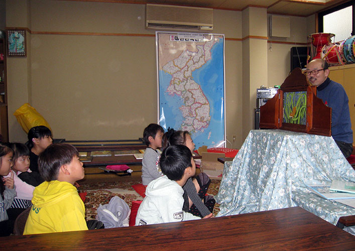 京都・左京支部(金光鳳支団長)は13日、韓国童話の紙芝居とユンノリ体験で楽しい雰囲気に包まれた。紙芝居は絵本作家で、左京支部団員でもあるキム・ファンさんが、選りすぐりの3編を語り聞かせた。また、ユンノリは留学生が指導にあたった。