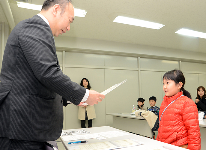 [ 修了証を贈られるオリニ(右) ]