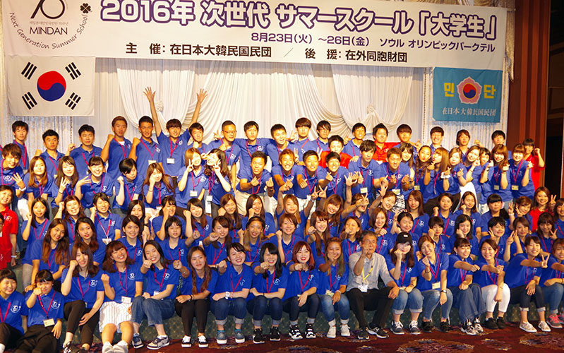 在日同胞社会の次世代育成運動の一環として、日本の学校に在学する中学、高校、大学生(短大・専門学校生含む)を対象とした、ソウルでの「2016在日同胞次世代サマースクール」(民団主催、在外同胞財団後援。引率団長=許槿一中央副団長)が8月4日からの中学生(7日まで)を皮切りに、高校生(18〜21日)、大学生(23〜26日)の順に開催された。今年は民団創立70周年記念事業「次世代1500人母国訪問」の一環として各コースとも定員を拡大、中・高・大学生あわせて406人が参加した。全国各地から参加した学生たちは、在日同胞の歴史や韓国の近代史、北韓情勢などを学ぶとともに、伝統文化体験、ハイテク企業の見学を通じて、同世代の同胞と母国を自らの肌で触れ合った。「韓民族として生きていきたい」との感想が多く聞かれた。