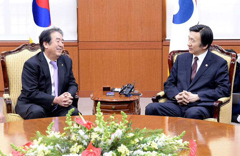 [ 民団幹部と面談する尹炳世外交部長官 ]
