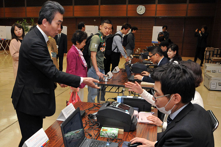 [ 大統領選挙の在外投票受付をする有権者(東京) ]