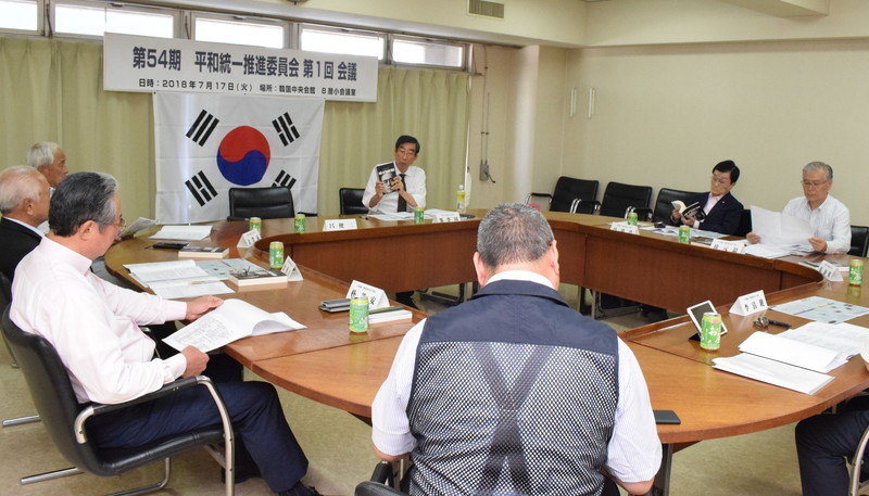 第54期平和統一推進委員会(鄭夢周委員長=副団長)第1回会議が17日、韓国中央会館(東京・港区)で開かれた=【写真上】。呂健二団長は「昨今の南北情勢を念頭に置きながら、専門委員会として平統推進委員会を構成した。南北首脳会談や北・米首脳会談で戦争の危機が避けられたことを評価しつつ、共通認識をもって南北問題に対処していこう」と述べた。