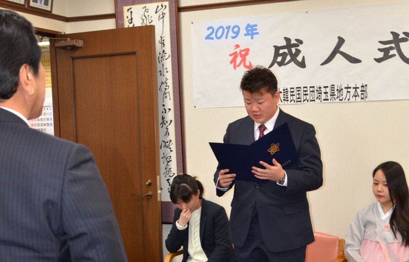 【埼玉】民団埼玉本部(田虓玔団長)は12日、埼玉韓国会館で新成人3人の門出を祝福した。