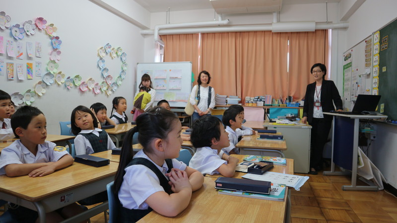 金剛学園小学校は18日、各学年単位で公開授業を行った。わが子の学校生活の様子を一目見ようと、保護者がたくさん見学に訪れた。1年生は算数。元気いっぱいに手を挙げて発表すると、クラスメイトから大きな拍手がおきた。