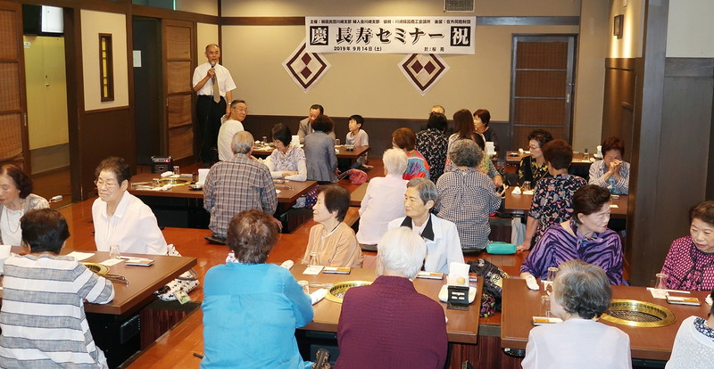 【神奈川】民団神奈川本部(李順載団長)各支部で9月中に75歳以上を対象とした長寿を祝福する長寿セミナーが順次開催された。李団長は「近年、同胞間の繋がりが希薄になってきているが長寿セミナーでは旧友同士が顔を合わせ心おきなく楽しい時間を過ごしてもらいたい」と語る。南武支部には田中和徳復興相、吉沢直美川崎市議会議員も激励に駆けつけた。