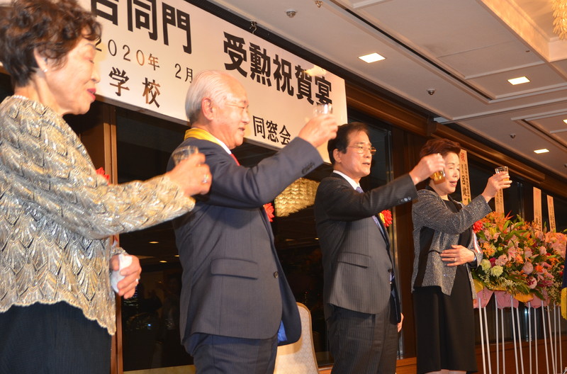民団中央本部からは鄭夢周副団長(第8期卒業生)が両先輩の功績をたたえた。民団東京本部の李壽源団長も「同胞社会に長年貢献してきたことが認められたもの。誠に誇らしい」と述べた。