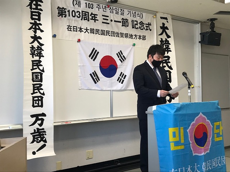 [ 独立宣言文の朗読(2月27日、民団佐賀本部) ]