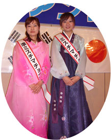 [ 民団北見支部と北見日韓協の共同企画で開催した「コリアンフェア」ではチョゴリの似合う女性2人に韓国旅行をプレゼントした ]