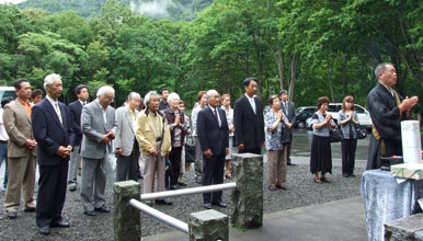 民団北海道本部は8月15日、札幌市平和の滝公園で韓国人殉難者慰霊祭を行った。同公園には第二次大戦中、道内での開発工事や炭坑などで犠牲となった多くの同胞を慰霊する碑が1960年に建立されている。35人が参列し、冥福を祈った=写真。