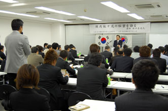 在日韓国青年商工人連合会(李英俊会長)は15日、東京・浜松町ビジネスセンターで第2回ビジネス部会を開き、「焼肉叙々苑の秘密を語る」をテーマに講演会を行った。東京青商の主管で、70余人が参加した。