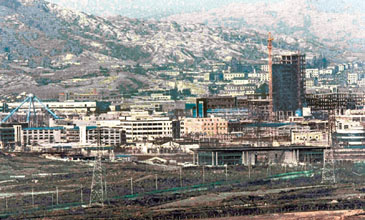 [ 韓国・坡州の都羅山展望台からみえる北韓の開城工業団地 ]
