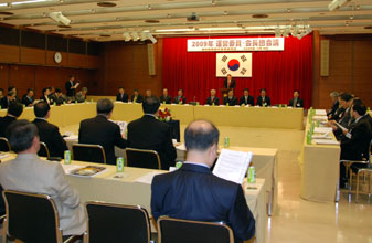 海外韓民族代表者協議会(会長=鄭進民団中央本部団長)の2009年運営委員・会長団会議が8日、韓国中央会館(東京都港区南麻布)で米、中、露、独、豪、印尼など12カ国から18の韓人会代表ら60人が参加して開かれた。