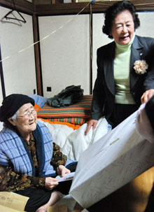 対象は90歳以上で、各都道府県単位でおおむね一人としている。記念事業は17日の滋賀県からスタートし、現在は関東地区の対象者を訪ねている。